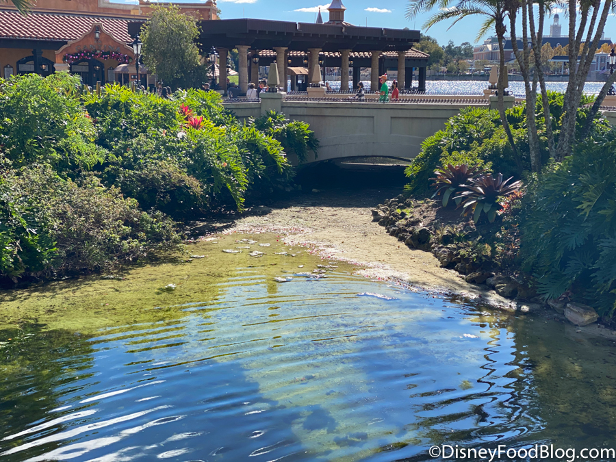 One last thing, it looks like the creek that runs into World Showcase Lagoon near Mexico is being drained a bit. We’ll keep an eye out if the low water levels indicate any more construction!