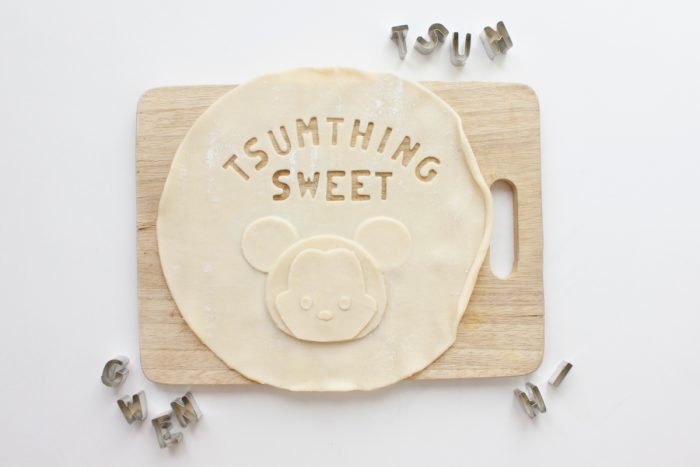 Step 5: Place your Tsum crust on another pie crust. Then use alphabet cookie cutters to cut out your favorite phrase around the Tsum.