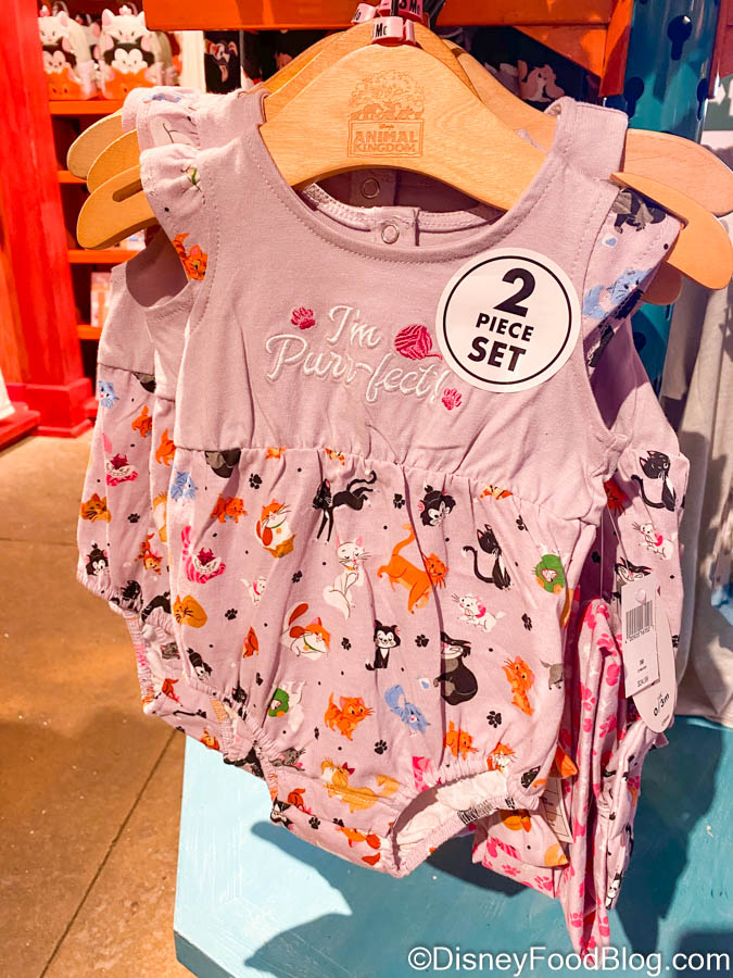 There are also a few very precious items for your littlest ones! This “I’m Purr-fect” 2-piece set for your baby would be a great choice for Baby’s First Disney Trip!