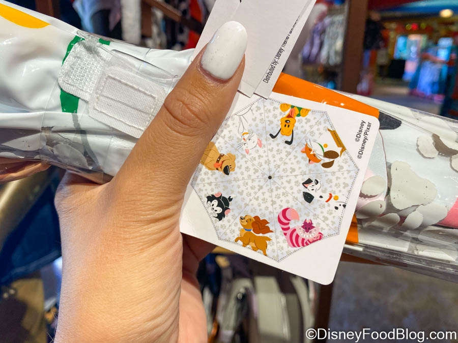 The Disney Dogs umbrella is $39.99, and here’s a picture of what it looks like from the top. We think this would pair purr-fectly (sorry, we had to) with the matching raincoat we spotted in EPCOT!