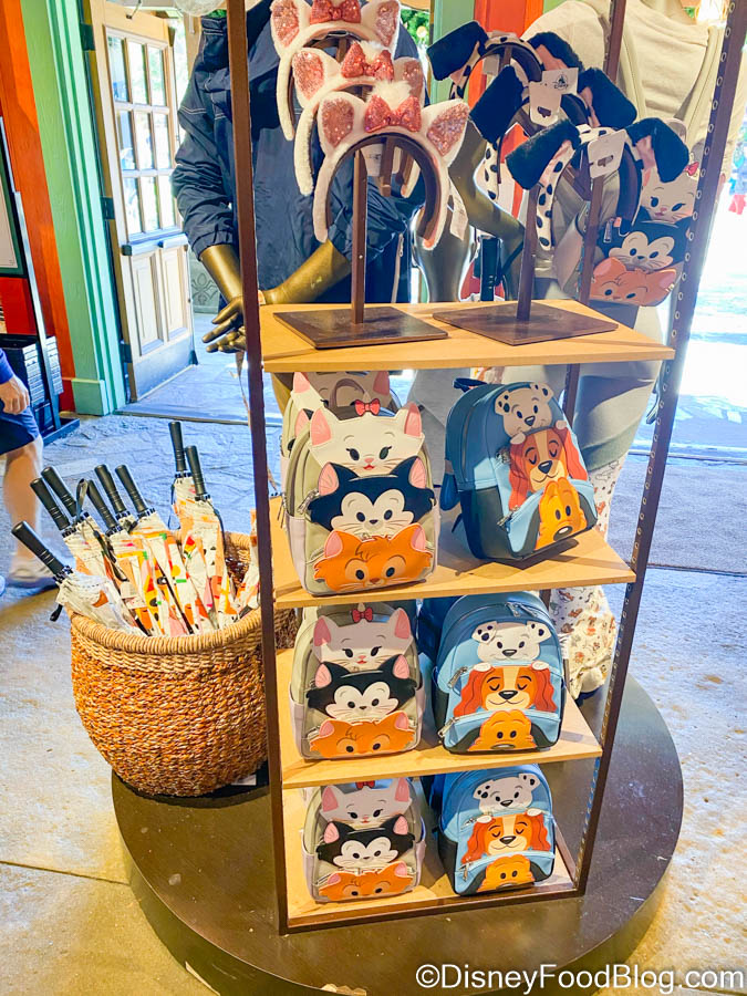 We also found some items in the store that we had previously noticed around Disney World. The Marie and Dalmatian ears were available, as well as the Disney Dogs and Disney Cats backpacks.