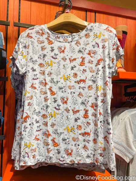 The next item is too cute to pass up, it’s a shirt covered in our favorite Disney dogs! We spot Pluto, some Dalmatians, Lady, and even Nana amongst the print. This fun piece of Disney style is priced at $36.99.