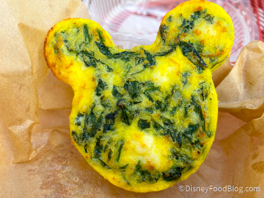These are a fun and easy way to get a solid, protein-packed breakfast to keep your energy up for a full day of park touring…but they might also be a GREAT way to get kids to eat their eggs and spinach! The Mickey Breakfast Frittatas are $6.99 each.