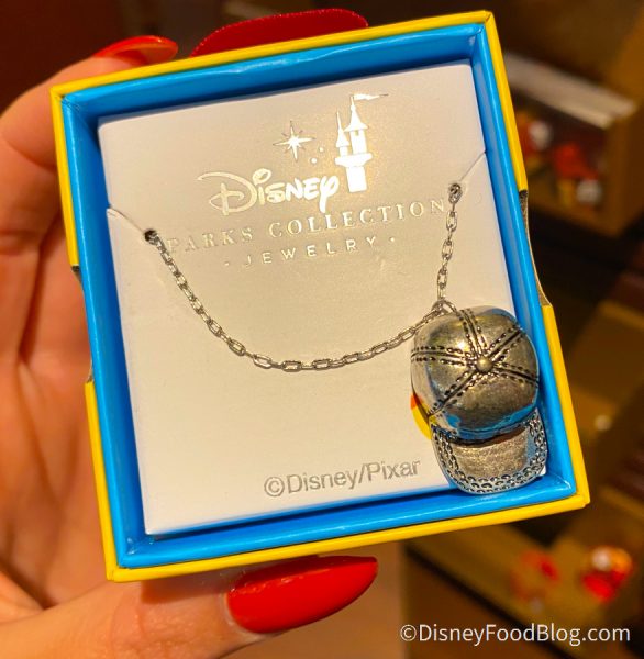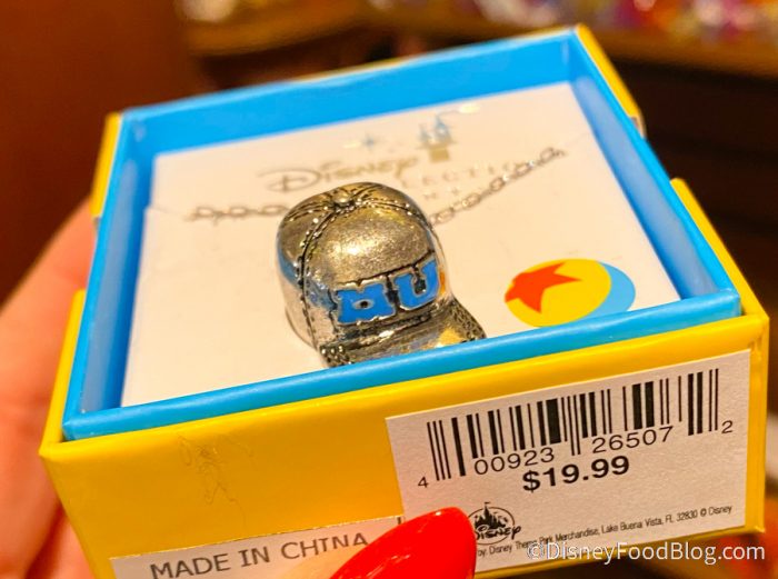 But we’re about to get ALL decked out in some new Pixar jewelry that we spotted at Disney World! We’re headed back to school with this Monsters University Baseball Cap Necklace, which is just like the cap that Mike Wazowski has!