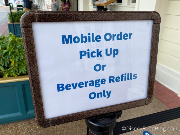 More new signage indicates that this line is ONLY for mobile order pick-up or beverage refills.