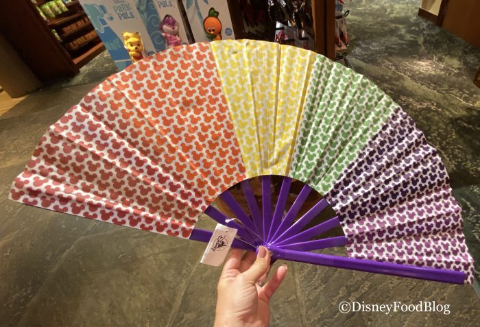 While strolling through the Emporium, this Rainbow Mickey Fan was the first to catch our eye. It reminds us a bit of the Rainbow Mickey Icon Fan we spotted before, but with a different twist to the design!