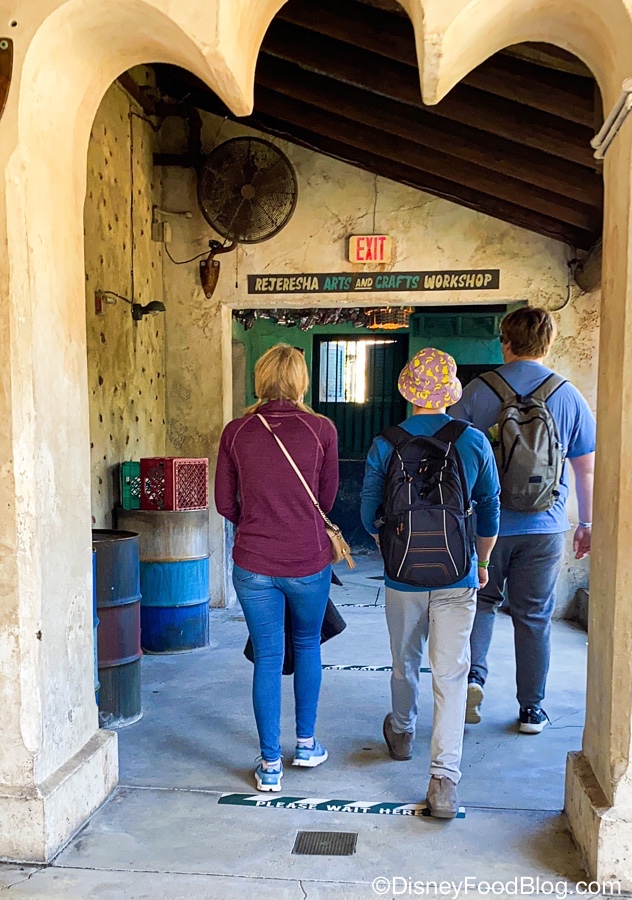 From waiting inside a restaurant to go on Peter Pan’s Flight to queuing up at Muppet*Vision 3D for Rise of the Resistance, we never know where we might end up! Today in Disney’s Animal Kingdom, the line for Kilimanjaro Safaris took us on a wistful stroll down memory lane, to the outdoor queue space at the Festival of the Lion King!