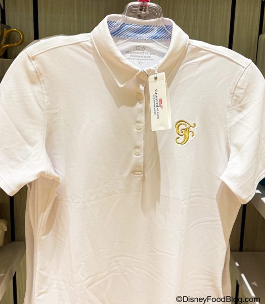 The shirt is dapper and comfy, and it’s got “wear me to Narcoossee’s!” written all over it. You know, in addition to the gold Grand Floridian logo on the front. This polo is priced at $95.