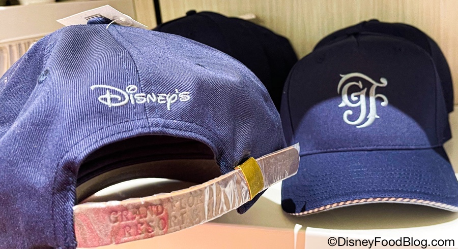Dark blue with the regal Grand Floridian logo on the front and “Disney’s Grand Floridian Resort & Spa” on the back, they’re an iconic way to “cap off” your resort ensemble. The caps cost $29.99.