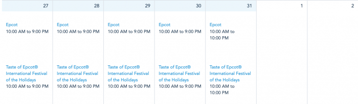 - Monday, December 28th, Tuesday, December 29th, and Wednesday, December 30th: Park Pass Reservations are AVAILABLE at EPCOT.