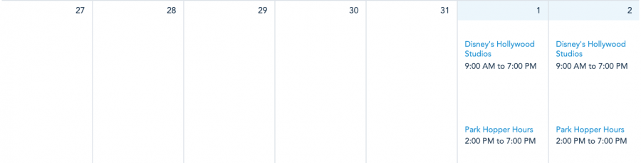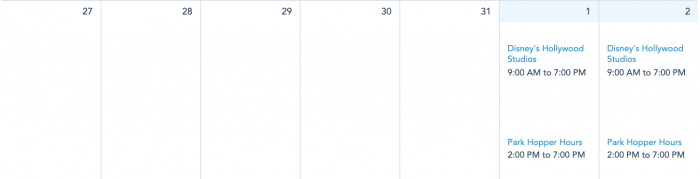 On January 1st and January 2nd, Disney’s Hollywood Studios will be open from 9AM-7PM. Park Hopper Hours at Hollywood Studios will be from 2PM-7PM.
