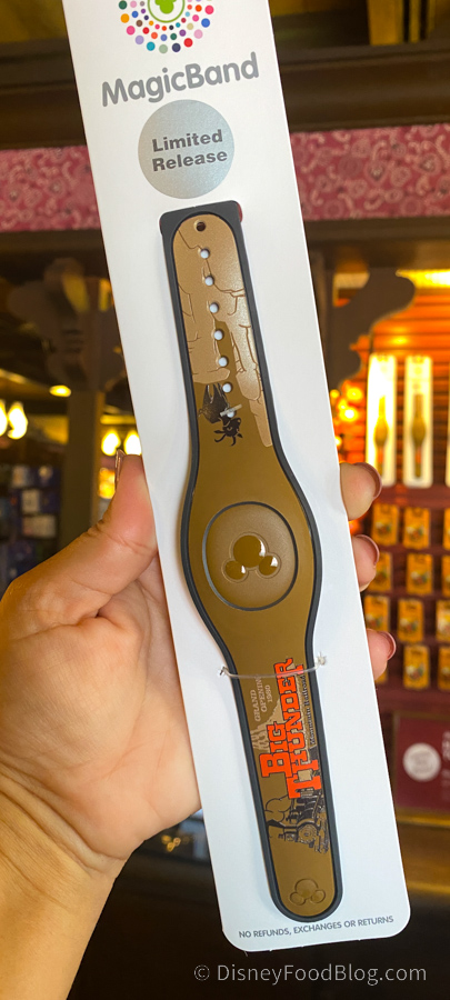Three new MagicBands arrived online last week, ones that we had previously spotted in the parks. The first of the group was this Big Thunder Mountain Railroad MagicBand for the ride’s 40th anniversary.