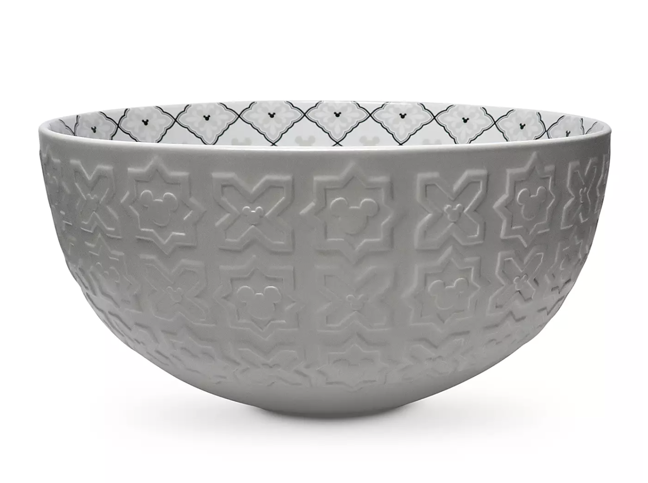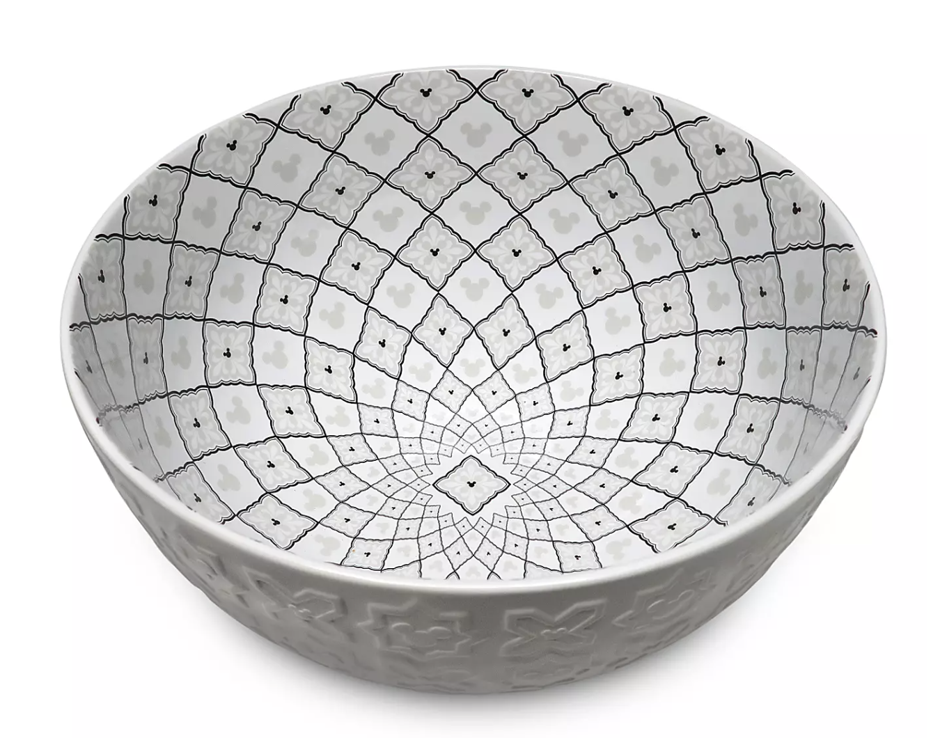 Serve up your meal in this Mickey Mouse Serving Bowl, featuring a Mickey design on the interior and Mickey icons with raised geometric patterns on the outside.