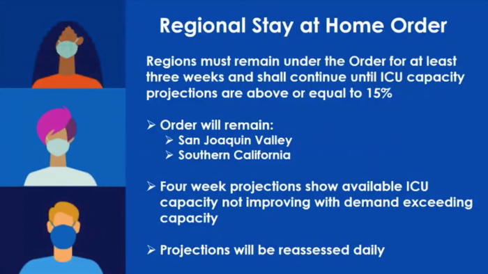 California Governor Gavin Newsom has implemented a system where “Stay-at-Home” orders are put in place in regions within the state once that particular area falls below 15% ICU capacity.