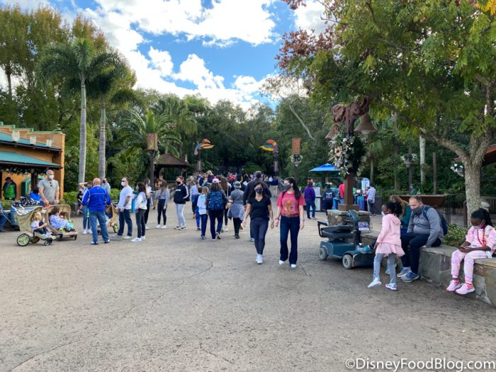 Things weren’t much better at DINOSAUR in Disney’s Animal Kingdom, where Cast Members were having to direct traffic crosswalk-style around the backed-up line. The Cretaceous Trail was used as extra queue space, because 80 minutes worth of people is a LOT!