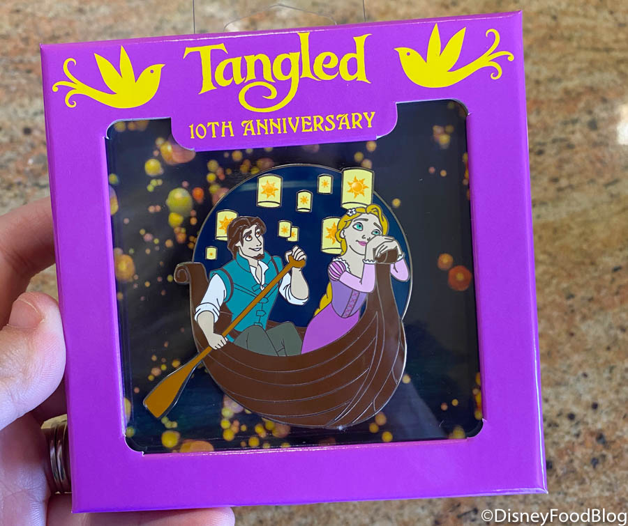 Our last stop is Pin Traders where there are a number of Tangled 10th Anniversary pins. We’ve spotted these in Disney World already! There’s a Jumbo Pin for $64.99…