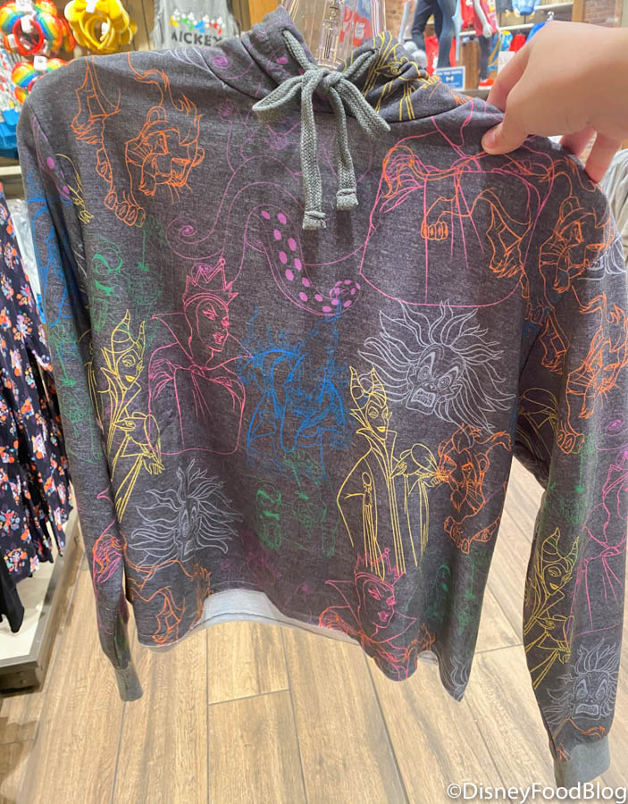 We’ll see more cats and dogs merch at the other shops, but we’ve got some other items at World of Disney to look at first! Check out the Villains Cropped Hoodie for $44.99.