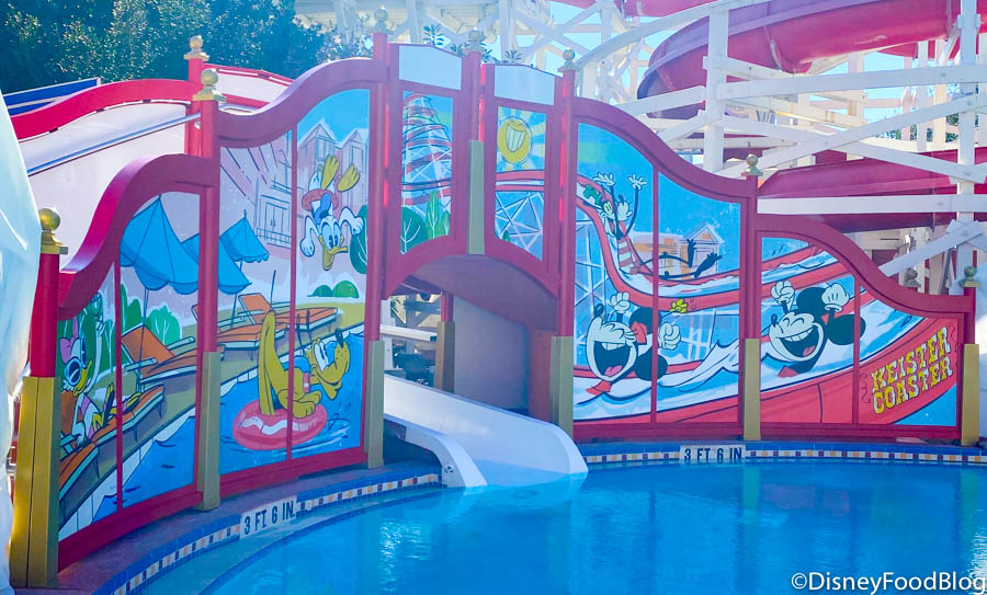 In December, the BoardWalk Inn officially got a new pool slide! The infamous Clown Slide is no more, and instead it has been replaced by a design featuring Mickey and Friends.