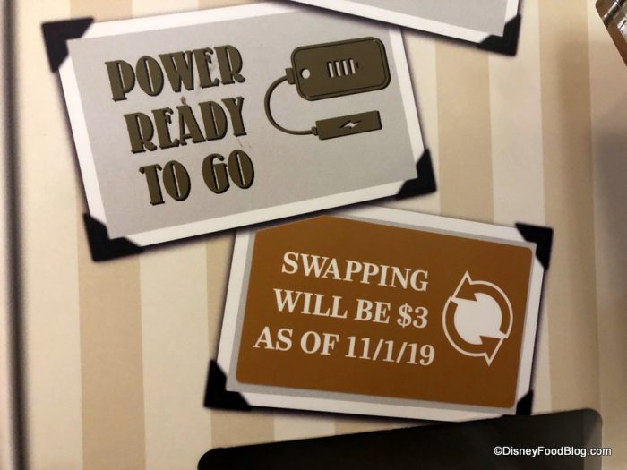 FuelRods have the big benefit of being swappable in the parks. If you use up all the juice in your FuelRod, you can head to a nearby kiosk to swap it out for a fully charged one. BUT, this swap costs $3 each time unless you have Founders Status (A.K.A., you purchased your FuelRod before October 2019).