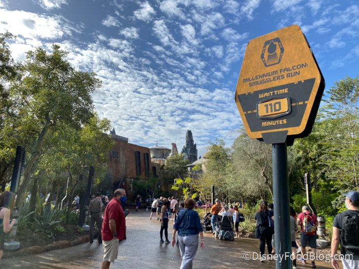We always expect the Millennium Falcon line to be long, but the wait time today, when we stopped by today, was a whopping 110 minutes!