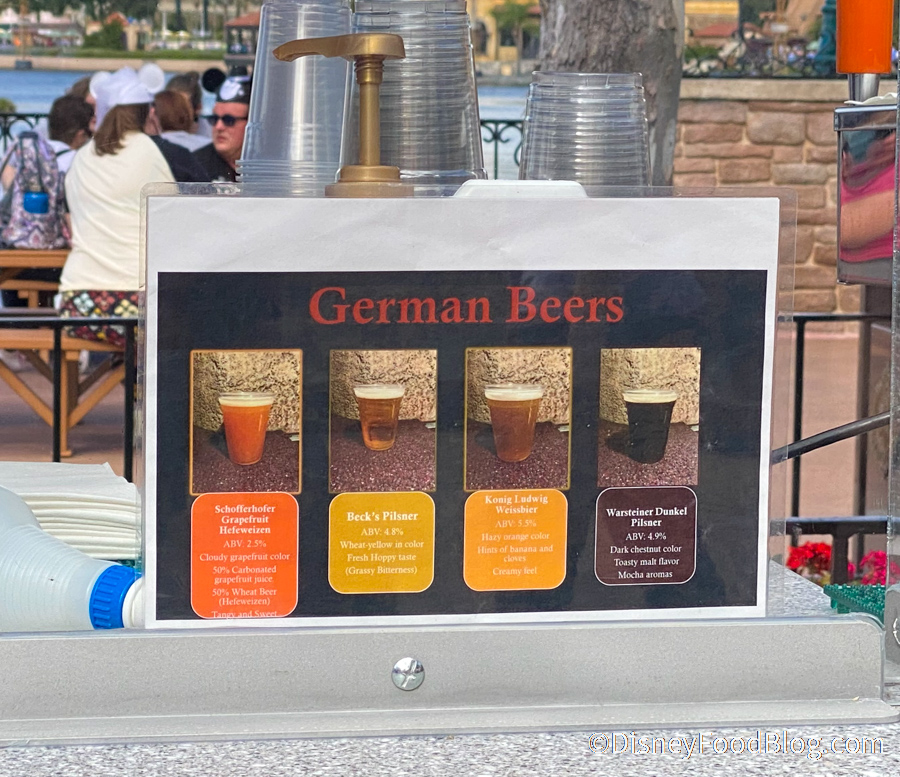 Right now, four beers are on tap, including a Schofferhoffer Grapefruit Hefeweizen, Beck’s Pilsner, Konig Ludwig Weissbier, and Warsteiner Dunkel Pilsner.
