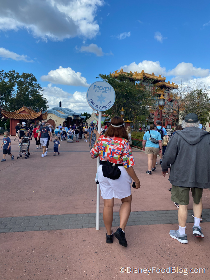 We’ve often seen the Frozen Ever After line completely snake away from Norway and into China. And a Cast Member told us that they’re now no longer letting guests into the line once it reaches China.