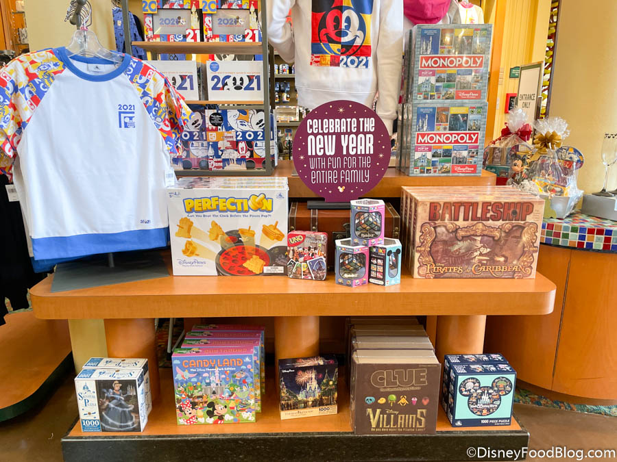 We spotted a super cute display out like we’ve seen elsewhere, encouraging guests to “Celebrate the New Year with Fun for the Entire Family.” Guests can stock up on 2021 merch, puzzles, and games!