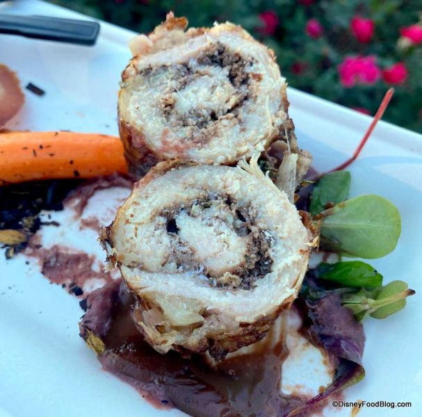 - Coq au Vin: Chicken Roulade with Violet Mustard, Candied Carrots, Pancetta Crisp, Marble Potatoes and Beurre Rouge Sauce – $6.75, DDP Snack Eligible