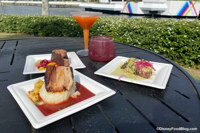 - Pork Belly Pastor: Pastor-marinated Pork Belly atop Boniato Purée with Charred Pineapple and Crispy Cilantro (Gluten/Wheat Friendly) – $7.50, DDP Snack Eligible