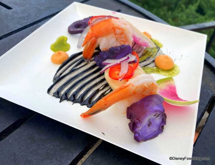 - Chilled Seafood Cocktail with Octopus, Scallops, Shrimp, Black Garlic Aïoli, Tomato-Coconut Sauce and Serrano-Lime Oil – $8.50, DDP Snack Eligible
