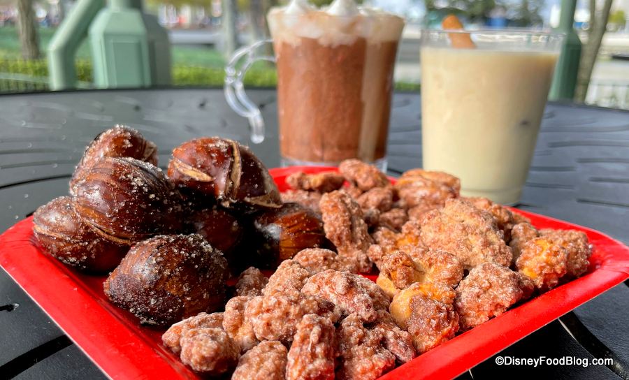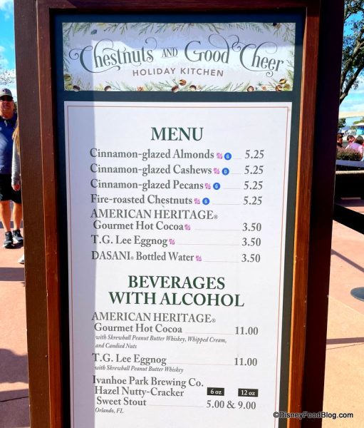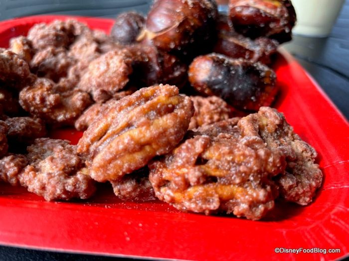 This new booth is located near EPCOT’s Port of Entry for your fill of chestnuts (and lots of other nuts!) and — of course — good cheer!
