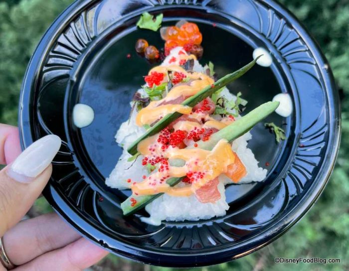 - Chirashi Sushi Tree: Sashimi-grade tuna, salmon, ikura, and yellowtail with vegetables decorated on an artistic bed of rice to celebrate the holidays — $6.50, DDP Snack Eligible