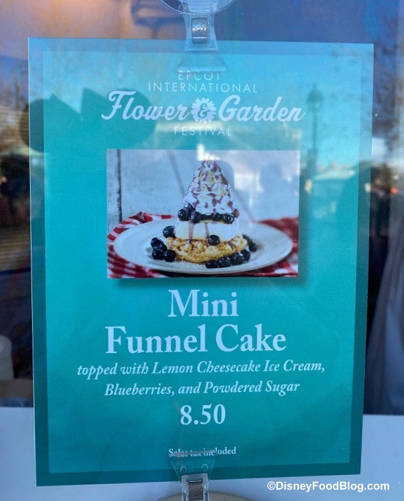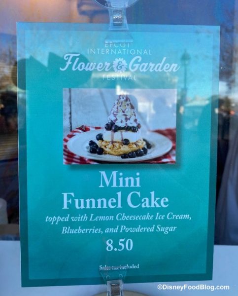 - Mini Funnel Cake topped with Lemon Cheesecake Ice Cream, Blueberries, and Powdered Sugar – $8.50