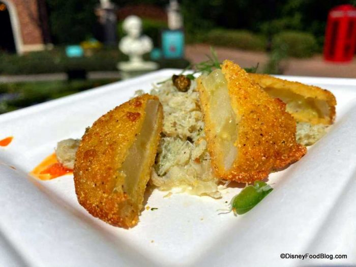 - Fried Green Tomatoes with Blue Crab-Fennel Salad, Remoulade, and Smoked Paprika Oil — $6.25, DDP Snack Eligible