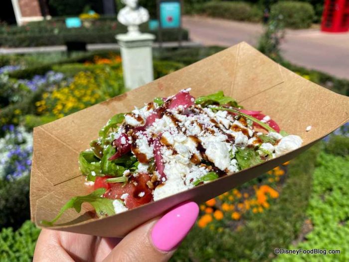 - Watermelon Salad with Pickled Onions, Feta, and Balsamic Reduction (gluten/wheat friendly) — $4.25, DDP Snack Eligible