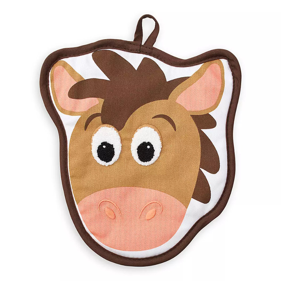 This pot holder, which is $14.99, features the face of Woody’s trusty steed in applique with chenille eyes and embroidered details. It also has a pocket in the back and a loop for hanging so you can always keep Bullseye around and handy!