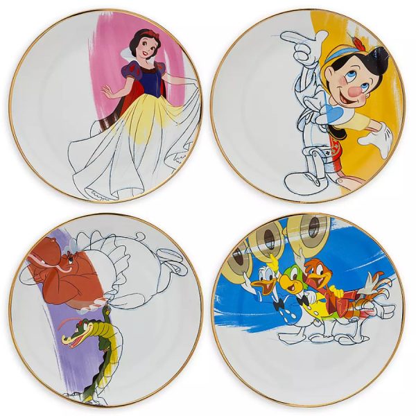 Celebrate the golden age of Disney animation with the Disney Ink & Paint Ceramic Salad Plate Set – ’30s – ’40s that features four plates with classic Disney characters: Snow White, Pinocchio, Hyacinth Hippo and Ben Ali Gator from Fantasia, and The Three Caballeros!
