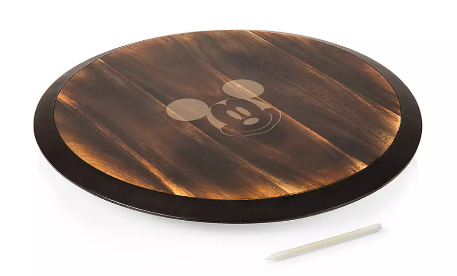 Entertain in style (even if it is just you and your family at home) with this Mickey Mouse Lazy Susan Tray, which is made from fired acacia wood with a chalkboard rim (and yes, you can mark it with the included pencil). We’ve got three words: ROTATING CHEESE BOARD.