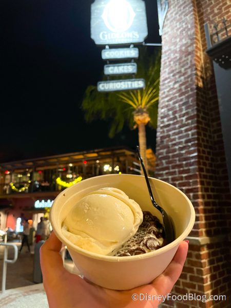 We luckily got to experience Hot Cookie Hour on National Dessert Day at Gideon’s other location in the Orlando East End Market. During Hot Cookie Hour, you can get a warm chocolate chip cookie (they’re huge, by the way) topped with a scoop of homemade ice cream!