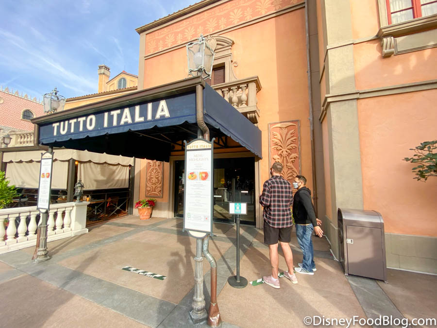 Back in July, we shared that Tutto Italia Ristorante at the Italy pavilion in EPCOT World Showcase was reopened for lunch and dinner. However, the adjacent bar, Tutto Gusto, did not join the reopening and instead has been serving as extended seating for the restaurant — up until a few weeks ago!
