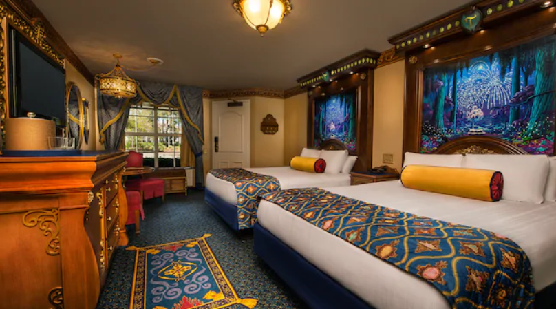 The Little Mermaid rooms are the cheapest, starting at $167 on select nights in January and going up to $320 a night for the week after Christmas. The suites have much more space and can hold up to six guests so they’re more expensive, ranging from $380 to $746 per night.