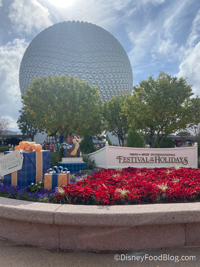 Although Festival of the Holidays has ended, we still saw the decor up at the front of the park. It’s likely this will just get changed out for Festival of the Arts decor soon, which starts this week!