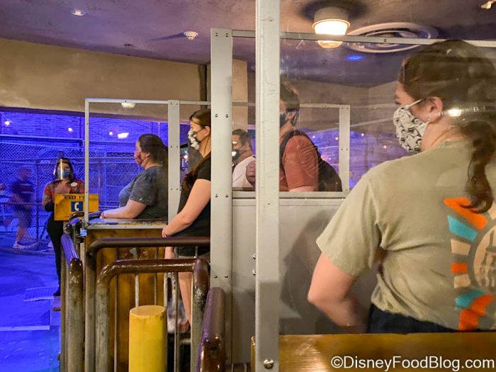 Plexiglass barriers had previously been installed on the ride vehicles, and Disney was limiting capacity in the vehicles, by skipping rows and skipping certain seats between parties.