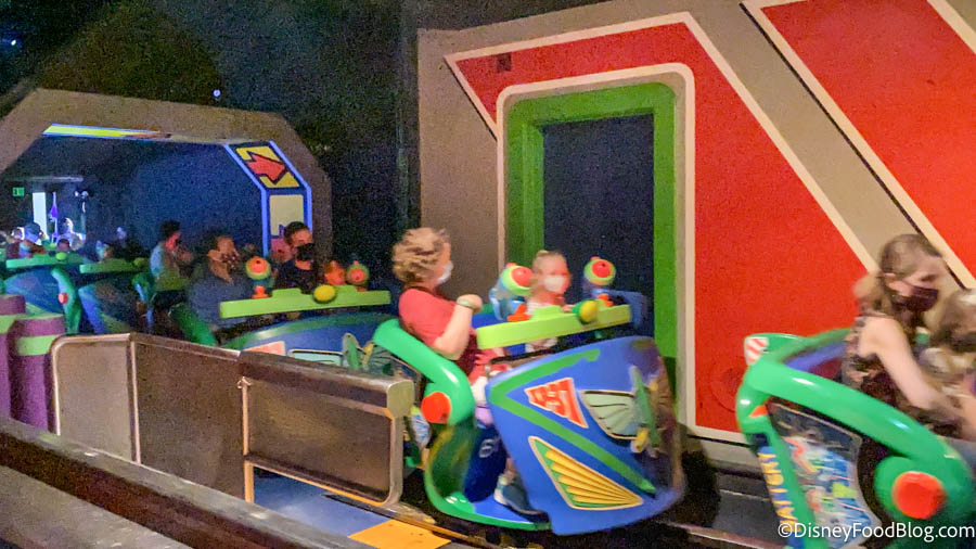 For Buzz Lightyear’s Space Ranger Spin, we’ve seen the line go through some unexpected places — like through the queue area for Monsters, Inc. Laugh Floor, so be on the lookout for that.