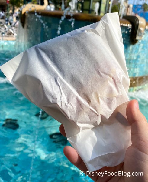 We checked with a Cast Member to make sure it was okay to take our snack out for some pictures…and she said, of course! As long as we were waiting until we were off property to remove our face mask to eat this snack, snapping a few photographs was totally okay.