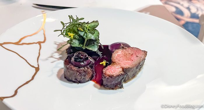 To set the scene, let’s start off with the fact that Victoria & Albert’s at Disney’s Grand Floridian Resort and Spa has a AAA Five-Diamond rating, making it one of the most highly acclaimed restaurants in the country. Guests can choose to dine in the Main Dining Room or the more private Queen Victoria Room. You’ll dine on an eight-to-twelve-course Chef’s Degustation Menu that changes depending on what’s in season.