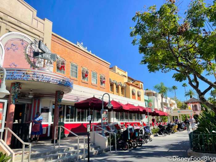 One weird thing we noticed — a few Star Wars: Galaxy’s Edge Photopass photographers (the lady in purple here) were standing out in Hollywood Boulevard! Usually, these galactic denizens stay over on Batuu.
