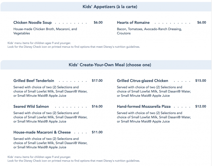 Two additional appetizers are now available on the allergy-friendly child menu. Kids now have the option for some Chicken Noodle Soup made with house-made chicken broth, macaroni, and vegetables. And, a Hearts of Romaine salad with avocado-ranch dressing, tomatoes, bacon, and croutons.