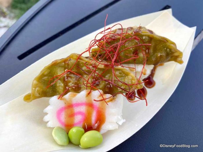 We had a version of the Vegetable Gyoza last year but this one has slightly different ingredients. This dish comes with vegetable-filled gyozas with tofu atop mashed potatoes with a Kamaboko fish cake, pepper strings, and Tonkatsu teriyaki sauce. Yum! The gyoza is $6.