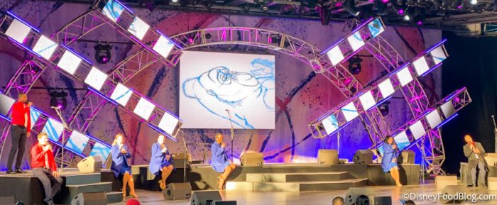 In between performances at the America Gardens Theater, Disney character artists take the stage for Animation Academy! This interactive class gives guests the chance to follow along with a Disney artist and draw their own Disney character. Paper, pencil and clipboard are even provided!